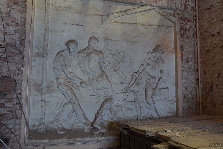 Ремонт театра кукол продолжается в Туле. В ходе работ строители обнаружили барельеф, изображающий трех металлургов. Предположительно, он был выполнен в прошлом веке.