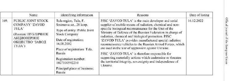 Два тульских завода включены в девятый пакет санкций Евросоюза, принятый 16 декабря.
