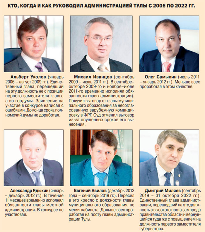 Кабинет главы администрации Тулы пустует с ноября. Его прежний хозяин Дмитрий Миляев проработал там три года с небольшим и переехал с пятого этажа в доме правительства области на седьмой, став первым заместителем губернатора. В администрации его правой рукой был Илья Беспалов, которого и сделали «местоблюстителем» до назначения нового главы. Посты заместителя, первого зама главы он занимал в течение 11-ти лет при четырёх(!) главах администрации, включая временных.