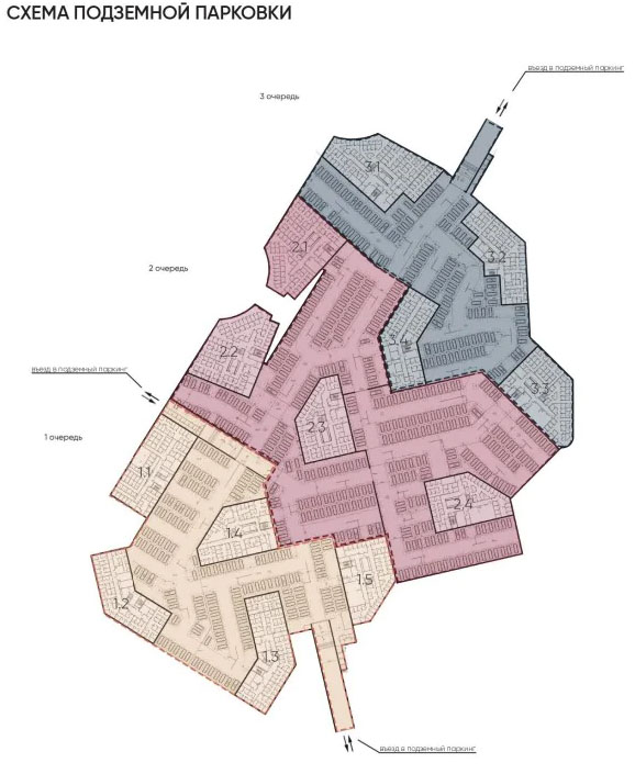 Первая — это пять домов высотой от пяти до одиннадцати этажей, вторая и третья — по четыре дома аналогичной высотности (застраивать территорию будут со стороны Пушкинской и Колетвинова). Парковочные места — как подземные, так и открытые — также будут оборудованы в три этапа: 183, 334 и 155 машиномест соответственно.