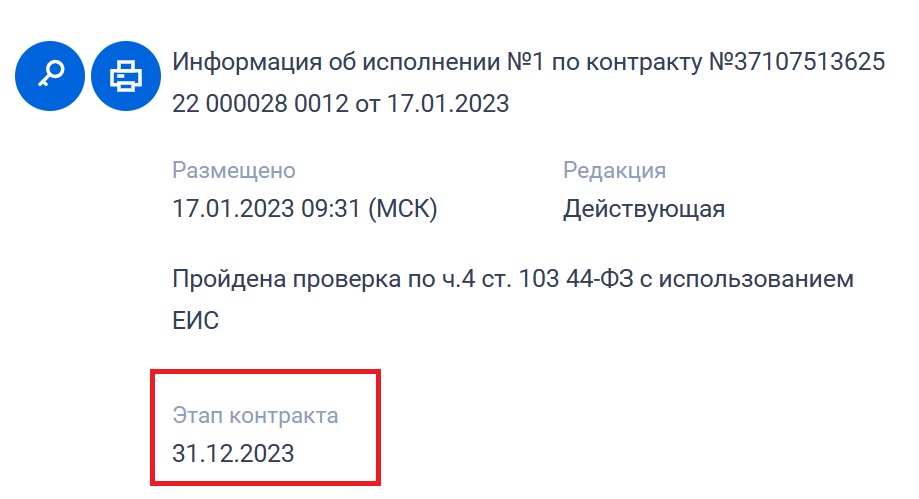 А вот информация по исполнению 1 этапа контракта, который закончился 31.12.2022 года.