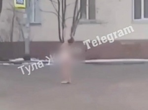 В тульских соцсетях опубликовано странное видео. На записи, сделанной очевидцем сегодня, 8 февраля, на улице Макаренко, запечатлена обнаженная женщина. Сначала она просто стояла на проезжей части, периодически поднимая руки вверх, затем начала бегать за прохожими и автомобилями.