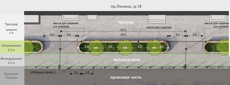 Они едут по тротуару, а между модулем с деревом и проезжей частью — бесполезное пространство