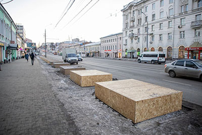 Они едут по тротуару, а между модулем с деревом и проезжей частью — бесполезное пространство