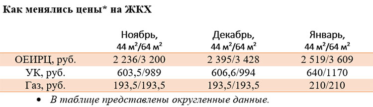 «Установлено, что предельный уровень индексации не превысит 9%, и многие коммунальные службы практически вплотную приблизились к этому порогу, — рассказывает экономист Марина Алехнович. — Так, в квитанциях за ноябрь, газ обходился 193,49 руб., на одного человека, а за декабрь уже 209,99 руб., получился прирост в 8,53%. Платежи в управляющую компанию (общедомовые нужды, содержание и ремонт жилья) – в среднем 604 руб. за стандартную двушку 44 кв.м. и 989 руб. за эквивалент трёшки 64 кв. м. Так в квитанциях за декабрь цифры выросли на 0,5%, а за январь они уже составили 640,3 и 1170 руб., рост — от 5,5 до 17,7% вместо обещанных 9%.