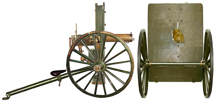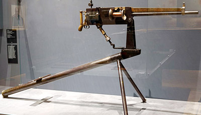 Русский «Виккерс-Максим» на крепостном лафете, приобретенный в Британии в конце XIX века. Такие пулеметы применялись в обороне Порт-Артура.