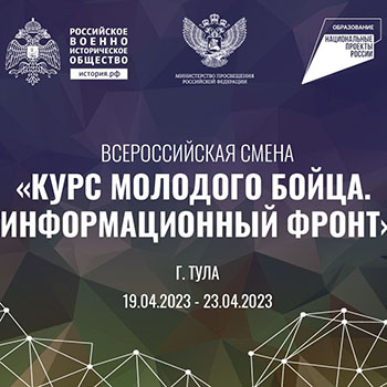 Всероссийская смена «Курс молодого бойца. Информационный фронт» – уникальная смена, организованная Российским военно-историческим обществом, призванная объединить молодых людей в возрасте от 18 до 30 лет, которые занимаются созданием просветительского информационного контента в сети «Интернет».