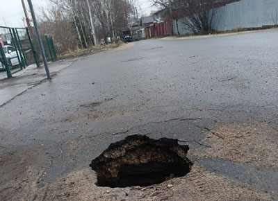 По словам свидетелей, яма достигает полуметра в глубину и 40 сантиметров в ширину. При этом она никак не огорожена.