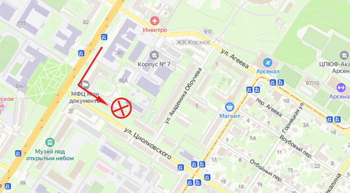 Запрет левого поворота на улицу Циолковского с проспекта Ленина