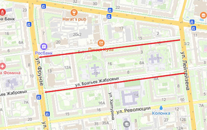 Введение одностороннего движения на улицах Клары Цеткин и Братьев Жабровых на участке от Фрунзе до Лейтейзена