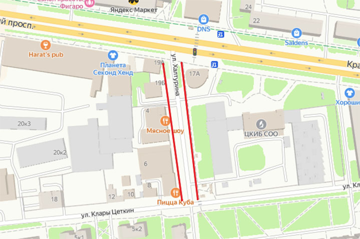 Введение одностороннего движения на участке улицы Халтурина от Клары Цеткин до Красноармейского проспекта