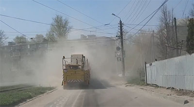— Это уборка? Они делают только хуже! Вы просто посмотрите на это, какая пылюка. Возле него вообще ничего видно не было. За ним даже машины не едут, все его объезжают, — пишет читатель.