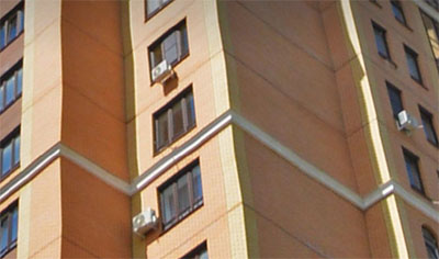 Знаете почему? Да кондиционеры на этом суперэлитарном доме опять эти, не побоюсь этого слова, управленцы, разрешили вешать куда попало. И теперь в принципе неплохой фасад с нормальными кирпичами выглядит как обсиженный гнидами бомж. Элитарии, которые в него заселились, сразу показали свой колхозный уровень. Типа: «Ляпи, холоп, кондишен, куда тебе сказано! Не видишь, элита тута живёт!». И холопы лепят.