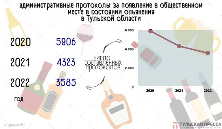 Как сообщили «Тульской прессе» в региональном управлении МВД, за появление в общественном месте в алкогольном опьянении: