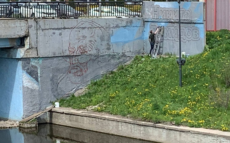 Рисунки очень лаконично вписываются в ландшафт, как бы продолжая набережную, а заодно украшая опоры Зареченского моста. Увидим, что получится уже через несколько дней. Установившаяся погода позволяет работать художникам.
