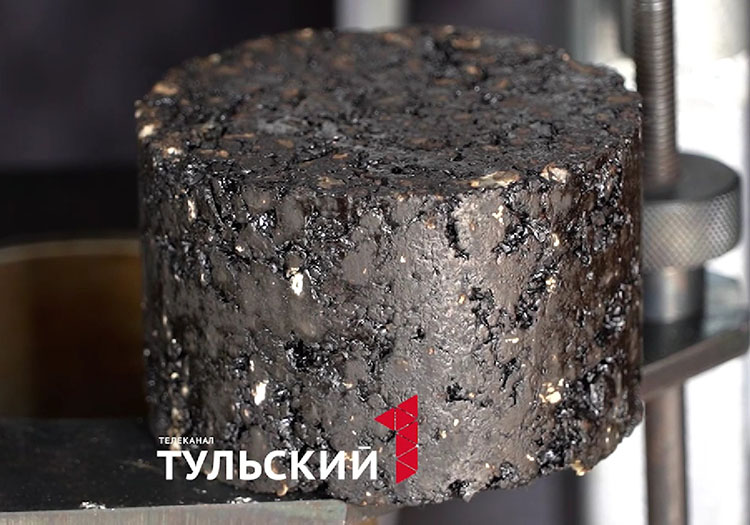 В щекинской лаборатории ставят эксперименты с фрагментами асфальта. Молот Маршалла бьет по образцу 100 раз, имитируя давление катка. Дальше его погружают в воду, замораживают, тысячи раз прокатывают по нему миниколесом, создавая дорожные условия. Если асфальт раскрошился — меняют его формулу. На щекинском асфальтобетонном заводе ее доводят до совершенства. Сейчас в составе битум вместе с полимерами.