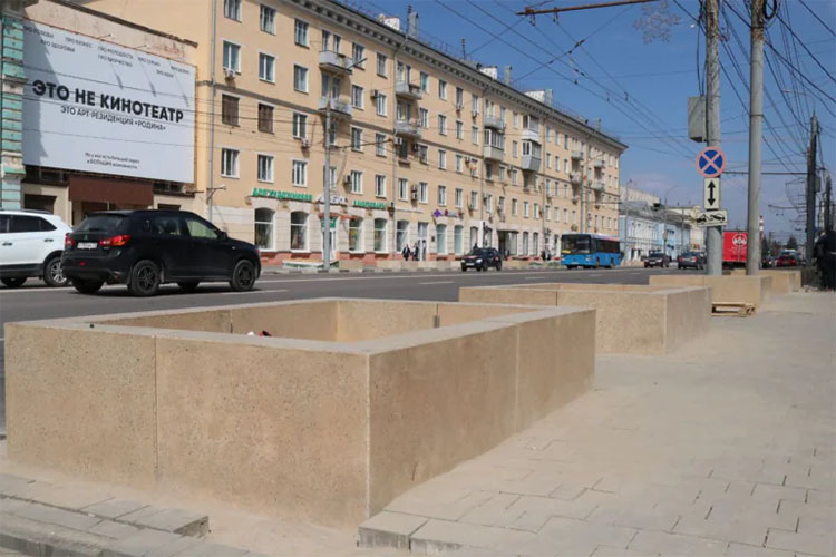 Улицы Тулы преображаются, на проспекте Ленина наконец высадили деревья, тротуары украшают малые архитектурные формы. И большинство из них выполнено в едином стиле — бетонные конструкции со строгими очертаниями.