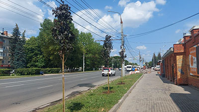 До конца недели работы должны завершить по нечетной стороне проспекта, а затем перейдут к работам и на противоположной стороне. Всего планируется высадить около 100 молодых кленов, которые станут заменой срубленным больным и засохшим деревьям.