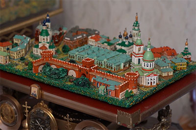 За 15 лет Сергей Сабина собрал «старую Тулу». В его исполнении можно увидеть кремль в двух вариантах, музей-усадьбу «Ясная поляна», и, конечно, центральные улицы. Сейчас несколько работ тульского мастера представлены в музее самоваров.