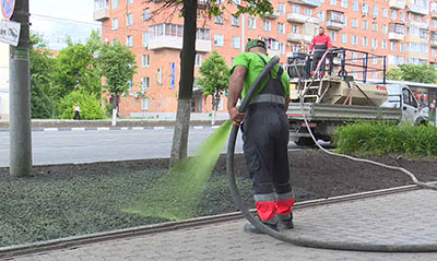 По ее словам, гидропосев будет применяться и дальше, если состояние газонов после зимнего периода окажется приемлемым. К тому же, у данного метода есть весомые преимущества в сравнении с рулонным газоном: возможность озеленить труднодоступные места, высокая скорость засевания.