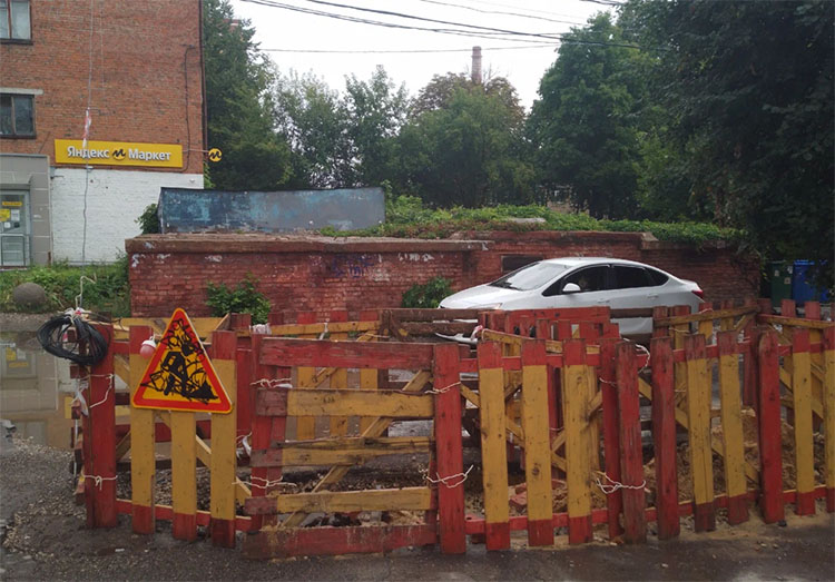 Вырытые и огороженные доблестными специалистами по ремонту подземных коммуникаций ямы на местах прорывов и других аварий.