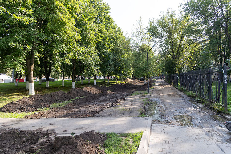 Члены рабочей группы обратили внимание на земляные работы в непосредственной близости от деревьев. Как часто бывало в Туле, корни и стволы деревьев могут пострадать при проведении работ по благоустройству.