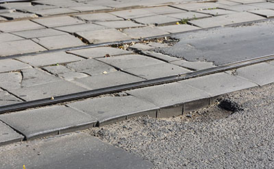 Невольно приходится заезжать на наглухо разбитую плитку на рельсах».
