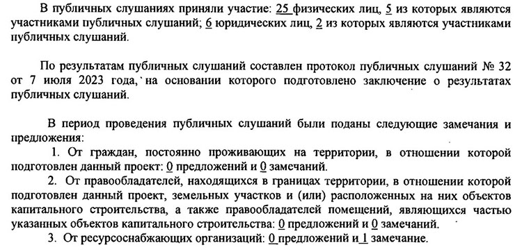 Несмотря на устные возражения жителей, присутствовавших на публичных слушаниях, в заключении отмечено — возражений и замечаний нет.