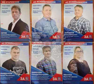 Стандартные листовки с одинаковыми лозунгами заметили на муниципальных выборах в Щёкинском районе Тульской области. Один кандидат – Алексей Зотов – выдвинут «Партией Роста» в Огарёвском округе, а остальные пятеро – «Единой Россией» в соседнем Яснополянском округе.