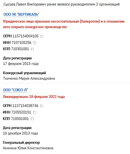 И это не первое предприятие, фактическим ликвидатором которого выступает господин Сысоев.