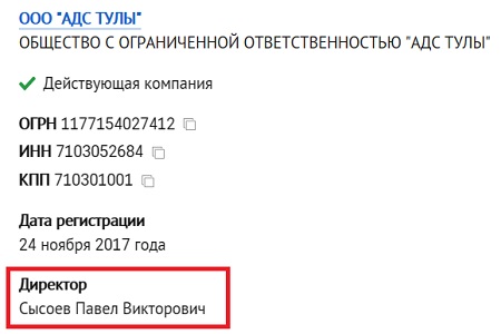 И вот, имея столь бурное прошлое, Сысоев… 8 сентября сего года назначен директором ООО «АДС Тулы».