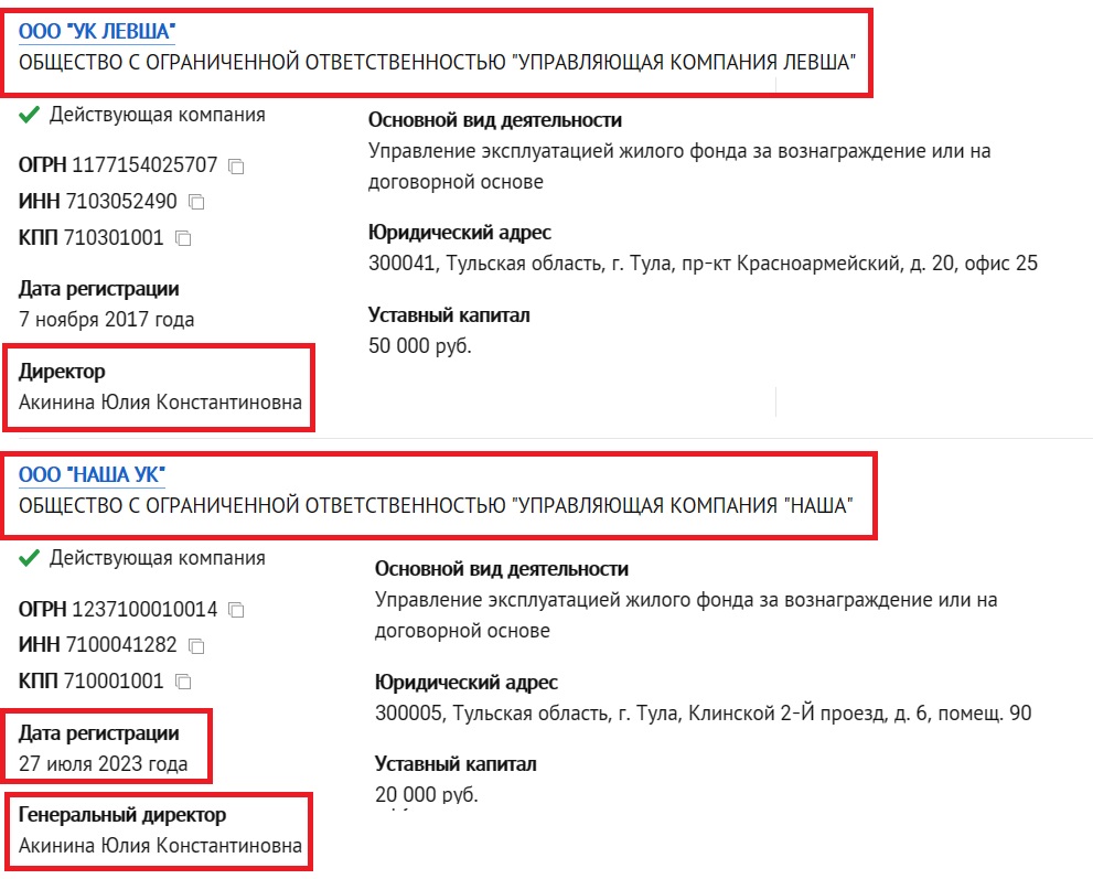 Чтобы дома, находившиеся в управлении УК «Левша», не дай Бог, не ушли под другую «управляшку», 27 июля этого года года зарегистрировано ООО «Наша УК».