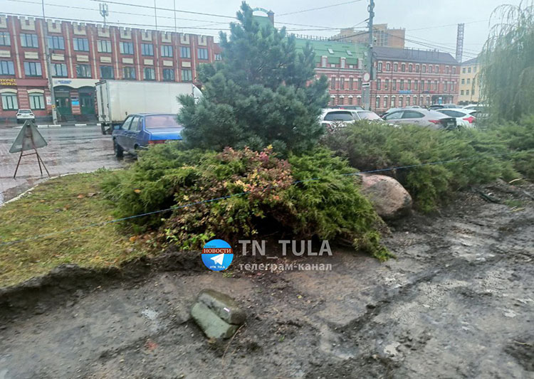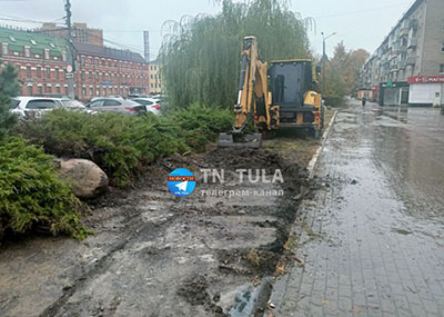 Из-за строительства велохайвея в центре Тулы разрыли клумбу. Очевидцы сообщили об этом в редакцию «Первого Тульского».