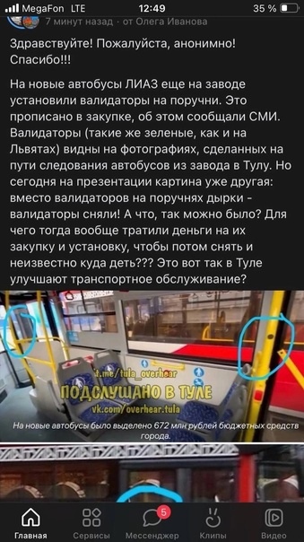 Странное случилось с новыми автобусами поступившими недавно в Тулу. Внимательные горожане заметили, что закупались они с валидаторами, приехали в Тулу с валидаторами, а министру их презентовали уже с дырками от валидаторов. На вопрос официальный аккаунт администрации ответил что-то не внятное про повышение качества обслуживания пассажиров.