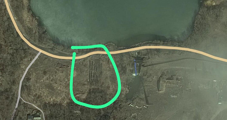 Действительно, трубы, которые лежали в поле у пруда, видны и со спутника: