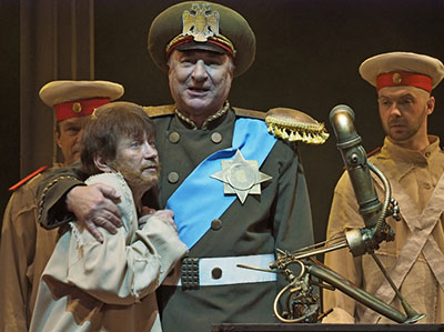 Жанр лубка режиссер выдержал во всем: в игре, в сценическом, более, чем скромном, оформлении (Александр Григоров), в музыкальном (Сурен Арутюнянц). Инструменты, сделанные из бутылок и прочих подручных предметов, добавляли колорита инструментам народным и классическим. Малобюджетность достаточно большой постановки (на сцене порядка двадцати человек) была очевидна. Но про внешний вид ее нельзя сказать, как в том анекдоте про Эрмитаж, куда зашел олигарх: «Чистенько, но бедненько». Напротив, костюмы выглядели достойно, решены остроумно. Когда директор театра Владислав Слухаенко после спектакля озвучил мне бюджет «Блохи», показалось, что я ослышалась — 250 (!!!) тысяч рублей, а потом стало неловко за постановки некоторых столичных театров, о которых, кроме бюджетов с шестью или семью нулями сказать нечего.