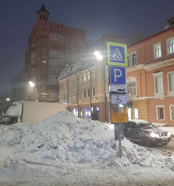 Так происходит ежегодно и на всех парковках, да снег потом убирают, но не всегда и ооочень небыстро. А зачем? Деньги инвалиды не платят, а на бесплатных пусть скажут спасибо, что знак воткнули. Радуйтесь, мы о вас заботимся.