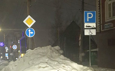 А писать то и нечего, и так всё видно. При расчистке парковок снег сваливают на места для инвалидов.
