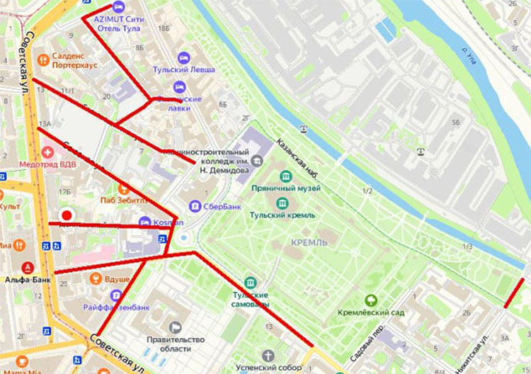 - на ул. Никитской на участке от Казанской набережной до ул. Розы Люксембург;