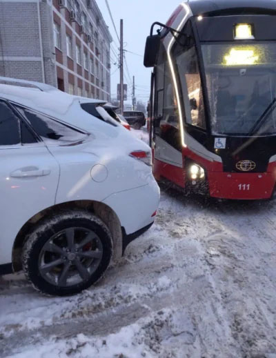 «Улица Коминтерна, д. 23. Очередной автохам, припарковав свое транспортное средство, не убедившись в том, что его авто не мешает проезду других участников дорожного движения, перекрыл движение трамваев, из-за чего скопилась очередь».