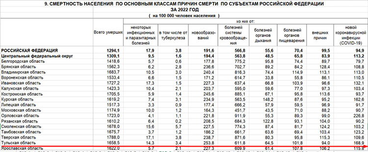 Кроме того, показатели смертности по другим причинам в Тульской области чуть выше среднего по России: