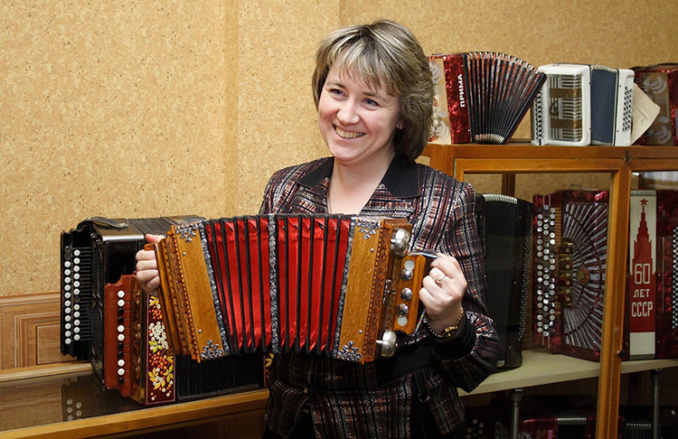 К язычковым инструментам относятся гармони, баяны, аккордеоны. Гармонь бывает двурядные, баяны до пяти рядов, а в аккордеоне правая сторона представлена клавишами. В Европе существует понятие кнопочного аккордеона, но отличить его от баяна сможет только специалист по музыкальным инструментам.