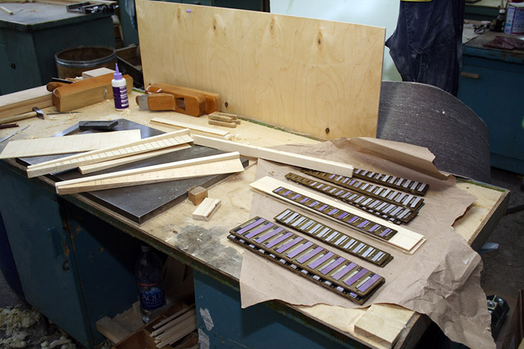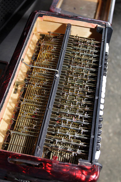 Образец для клавиш. Каждая гармонь состоит более чем из 3000 деталей.