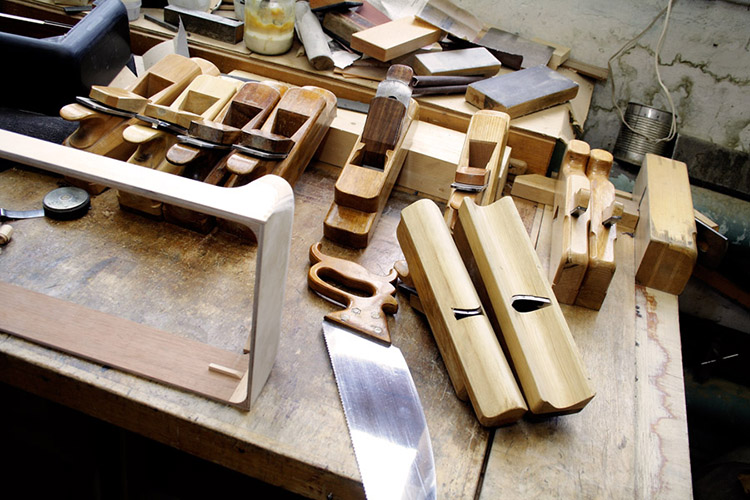 Все инструменты в арсенале мастера самодельные! Например эти рубанки для сточки округлых углов.