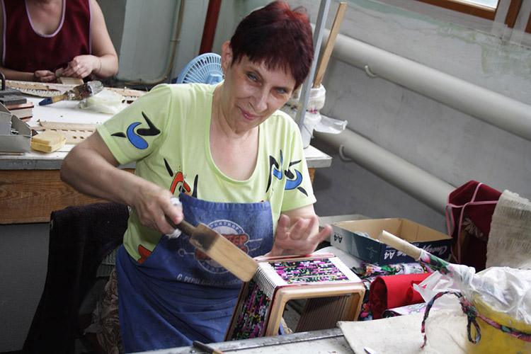 Каждый инструмент на фабрике расписывается в ручную и имеет свой неповторимый орнамент и рисунок.