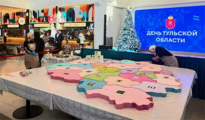 10 января на выставке-форуме «Россия» в Москве про[шёл] день Тульской области. В честь этого события на мероприятии изготовили самую большую карту нашего региона из белевской пастилы весом 283 килограмма, передает корреспондент Тульской службы новостей.