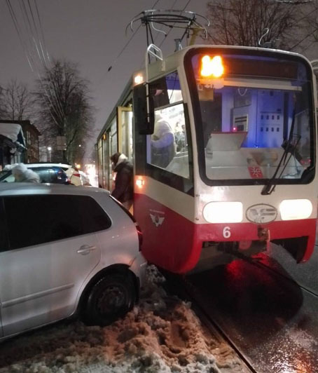 Давайте прикинем. Один трамвай Львёнок стоит 75 млн. Он может перевозить 155 человек. Люди, бросающие свои авто на трамвайных путях, делают бессмысленным развитие трамвая и трату на него городских и областных средств.