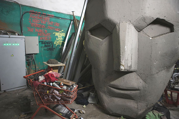 Но для нас это настоящая тайная комната с подрамниками, холстами, скульптурами и огромной бетонной головой.