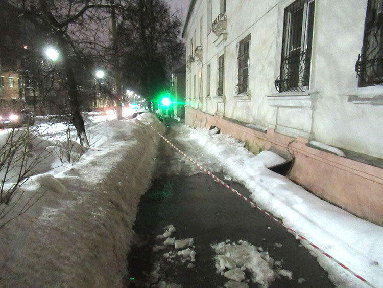 Решил вновь напомнить о такой проблеме. В Туле да и, судя по всему, ряде иных российских городов зимний период опасен тем, что во время оттепели с нечищеных крыш возможно падение снега, наледи и сосулек. К сожалению, известны случаи, когда подобное заканчивалось трагически, вплоть до гибели пешехода, попавшего под падение сосульки или ледяной глыбы.