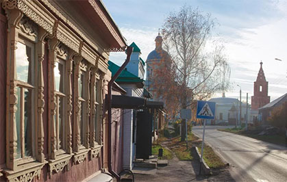Два других здания находятся чуть дальше, но тоже на въезде в исторический центр Епифани. В относительно недавнем прошлом здесь были педучилище, выпускники которого разъезжались до Омска и Белоруссии, и его общежитие. Потом в бывшем училище размещались детский сад и библиотека. Впрочем, история этих зданий начинается в конце ХVIII века: по генплану 1779 года на перекрестке улиц Тульской и Кузнечной должна была располагаться квадратная площадь, этими двумя зданиями та площадь была закреплена. Она и сейчас угадывается. Конечно, это были купеческие дома. Любопытно, что на первом этаже находилась винная лавка, а второй с 1902 арендовала городская управа. В 1979 году здания были брошены, а «подобраны» уже в ХХI веке Минкультом РФ.